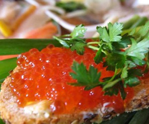 Икра. Содержит незаменимые аминокислоты, минералы, витамины групп А, В, С, D, фолиевую кислоту, которая защищает кожу и помогает предупредить малокровие. А входящий в ее состав лецитин – главное питательное вещество для нервных клеток. Поэтому икру так важно есть детям: она способствует умственному развитию. Но и это еще не все: тот же лецитин способствует выведению холестерина и замедляет процессы старения. Кроме того, красная и черная икра – это афродизиаки, чему способствуют входящие в ее состав йод и фосфор. Правда, при этом икра достаточно калорийна, и содержит много соли, а значит — противопоказана тем, кто страдает серьезными заболеваниями почек, гипертонией и ишемической болезнью сердца.